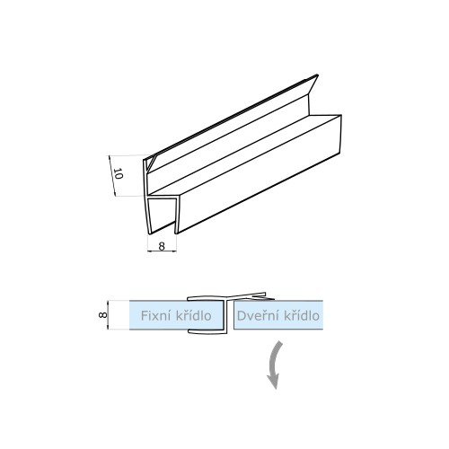 Těsnění falcové (dorazové) - černé, pro sklo 8 mm S201-B