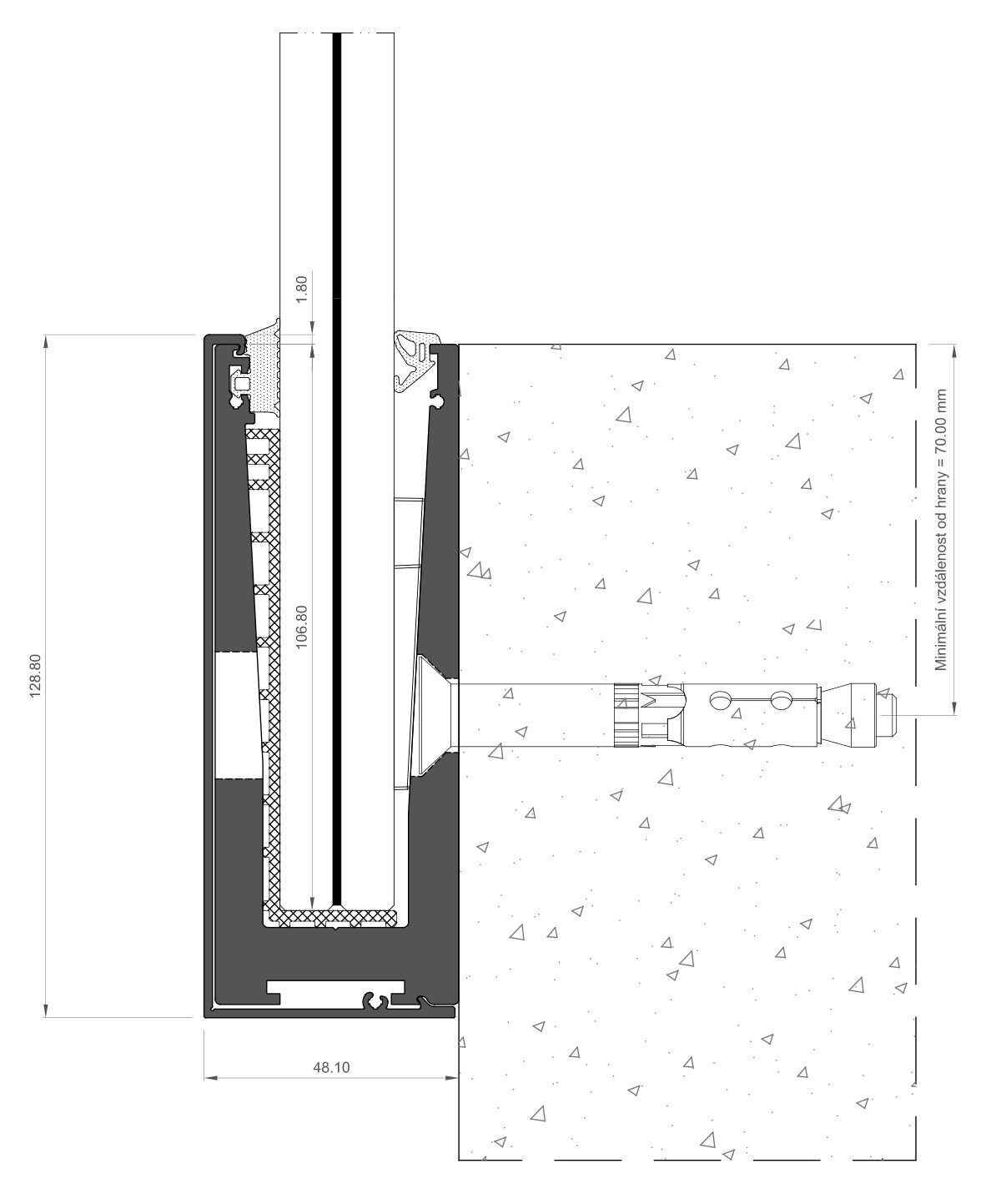 Zábradelní profil pro celoskleněné zábradlí - boční kotvení, 1-3 kN GM12