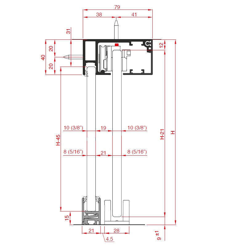 POSLEDNÍ KUS! Horní kolejnice posuvného systému MICRO 50 s fixním dílem. Montáž je možná na zeď i do stropu. Možnost lakování do jakékoliv barvy RAL.