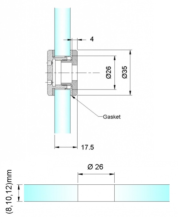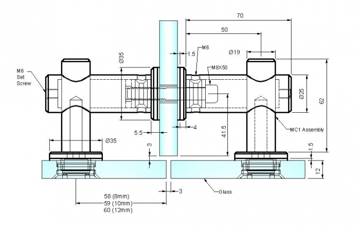 POSLEDNÍCH 5 ks! Dvojitá spojka skel s kolmým panelem, pro sklo 8-12 mm.