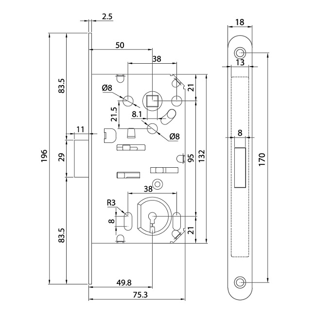 Magnetický zámek pro dřevěné dveřní křídlo do skryté zárubně GTI-E.