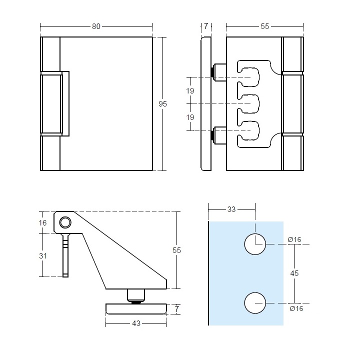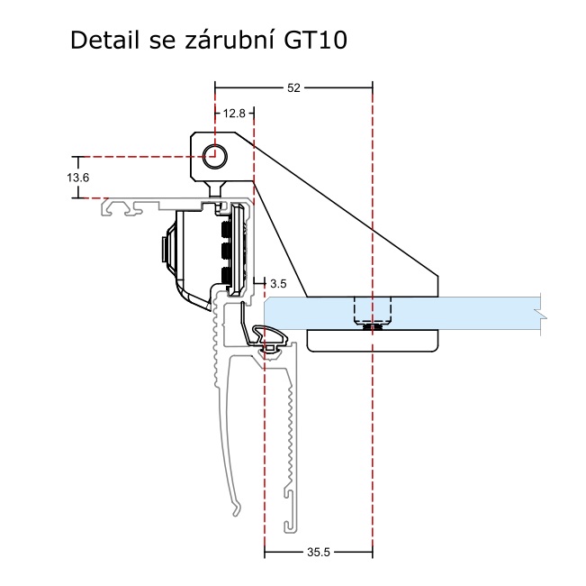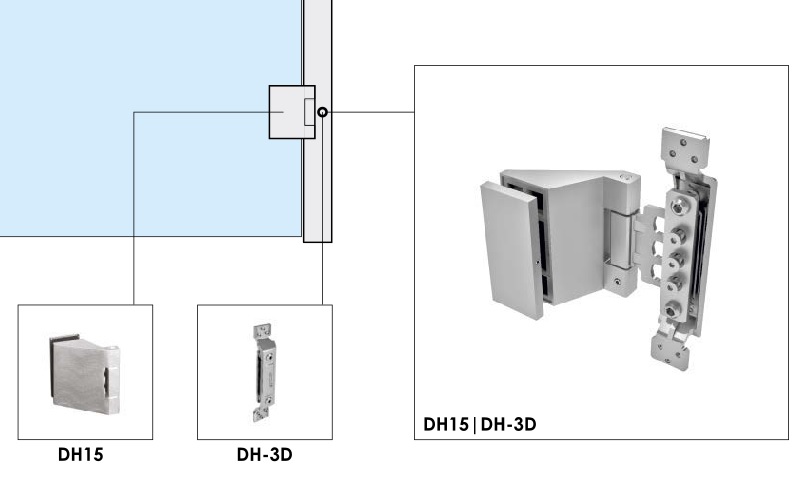 Závěs pro celoskleněné dveře do obložkové zárubně GT09 a GT10, je určen pro systémové řešení společně s regulační destičkou DH-3D - nutno objednat zvlášť.