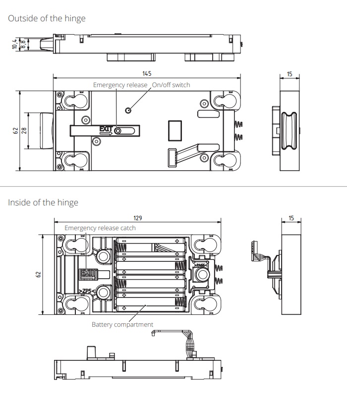 Zámek je napájený pomocí baterií (4x AA 1.5V)
