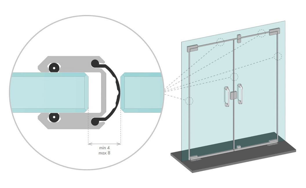 Hliníkový těsnící profil pro skleněné dveře GLASSFR