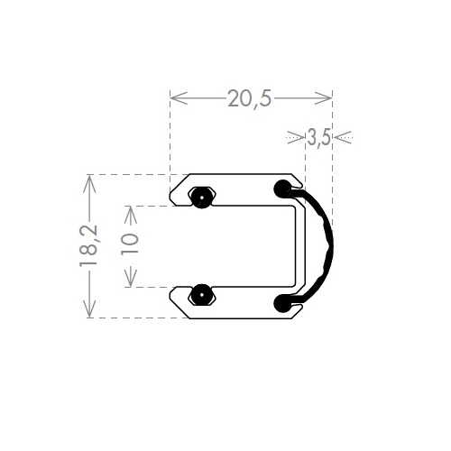 Těsnění pro skleněné dveře v podobě hliníkového profilu s antivibračním měkkým těsněním na vnitřní straně, pro sklo 8 nebo 10 mm, délka 2500 mm. Cena za ks.