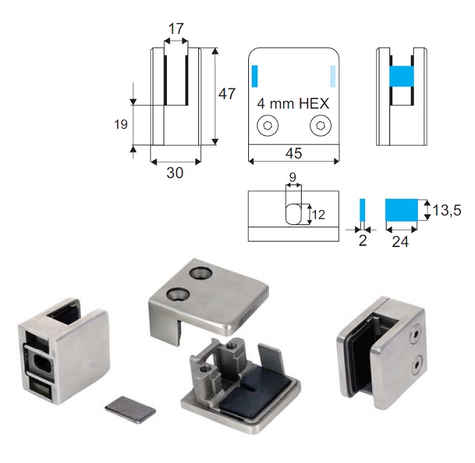 Úchyt skla pro zábradlí 22.10.300-0