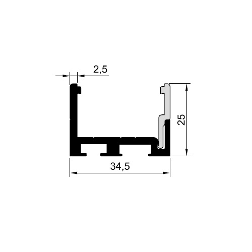 Délka profilu je 5900 mm. Prodej po bm. Uvedená cena je za bm, bez těsnění MT25T.
