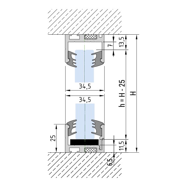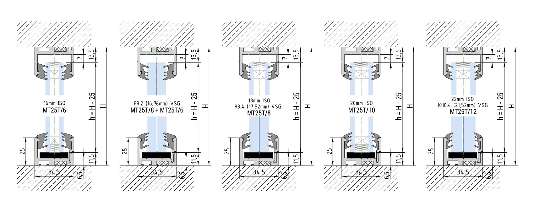 Společně s (horním) jednodílným profilem MT45H tvoří systémové řešení skleněné stěny.