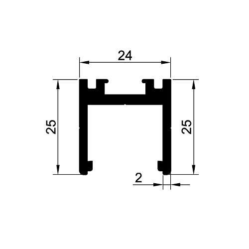 Hliníkový jednodílný zasklívací profil MT25H slouží pro pevné a bezpečné uchycení skleněných panelů dělících stěn a příček, složených z jednoduchých skel. Tento profil je vhodnou volbou do soukromých i komerčních prostor. Využít jej lze i do sprchových koutů nebo celoskleněných saunových stěn. Jedná se o elegantní, minimalistické provedení s rozměry pouze 24 x 25 mm!