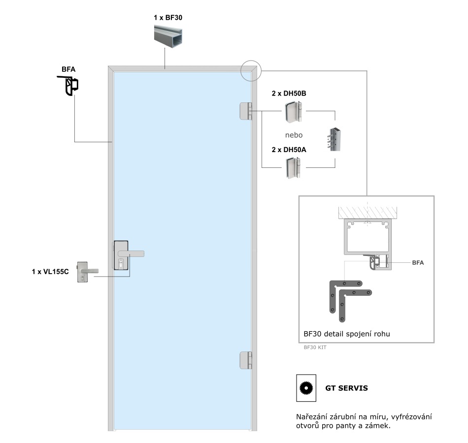Hliníková zárubeň, pro sklo 8-10 mm, 5500mm BF30