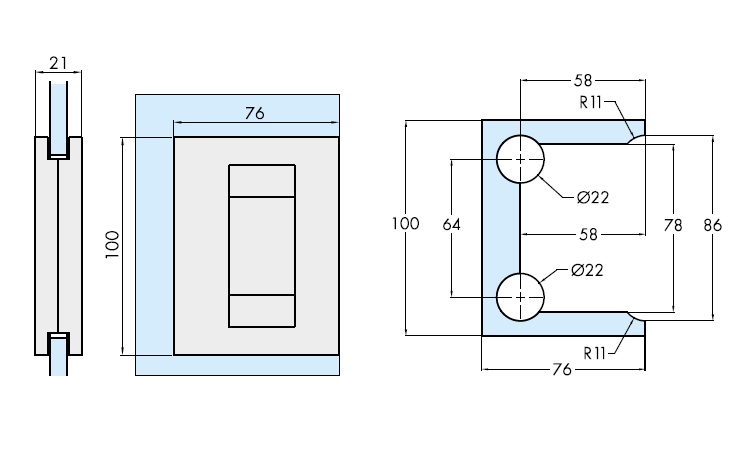 Designové madlo pro posuvné dveře, pro sklo 8-10 mm, materiál mosaz.