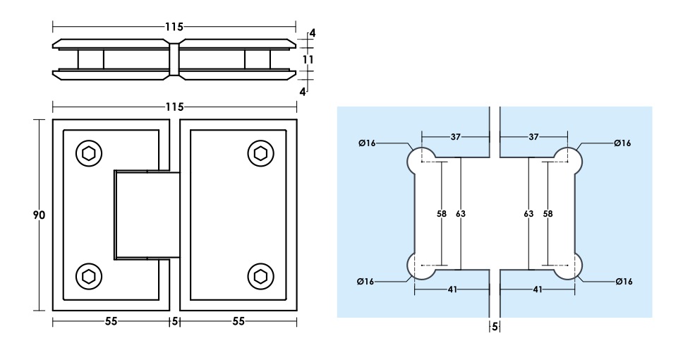Sprchový pant sklo-sklo 180° - zaoblené hrany