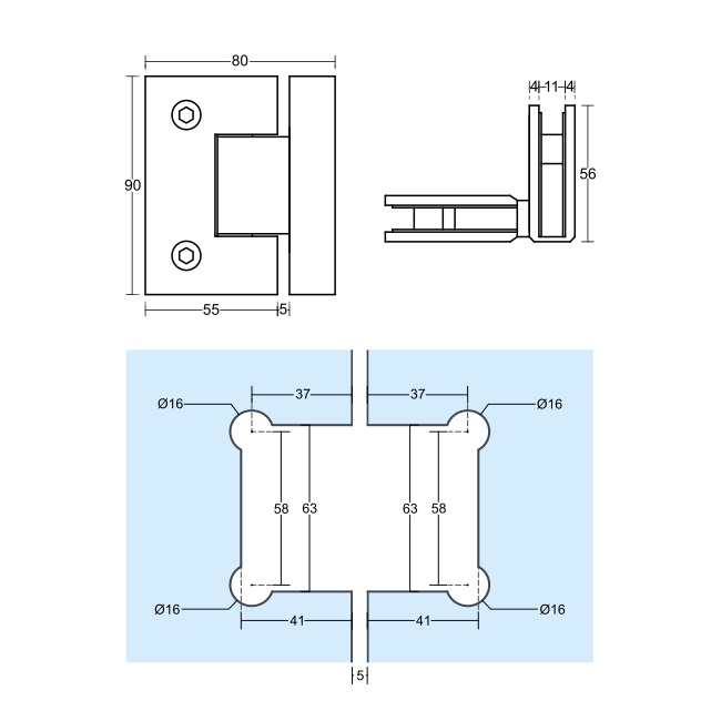 Sprchový pant sklo-sklo 90° - ostré hrany