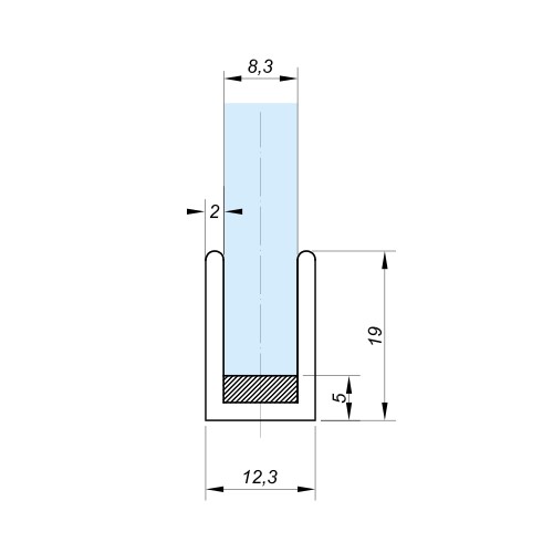 Hliníkový "U" profil 19x12,3x2, pro sklo 8 mm GG215