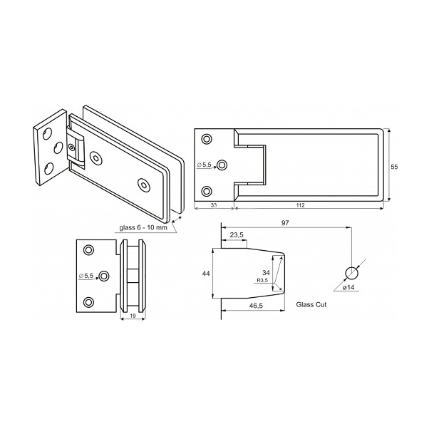 POSLEDNÍ 3 ks! Pant sklo-stěna, pro sklo 6-10 mm, max. šířka dveřního křídla 800 mm, max. váha dveřního křídla 36 kg/pár.