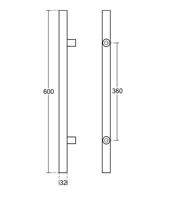 Dřevěný protikus k madlu HD01A délky 600 mm (ø32mm), rozteč os děr 360 mm. Pro sklo 8-10 mm. Materiál TOPOL. Vhodné do sauny.