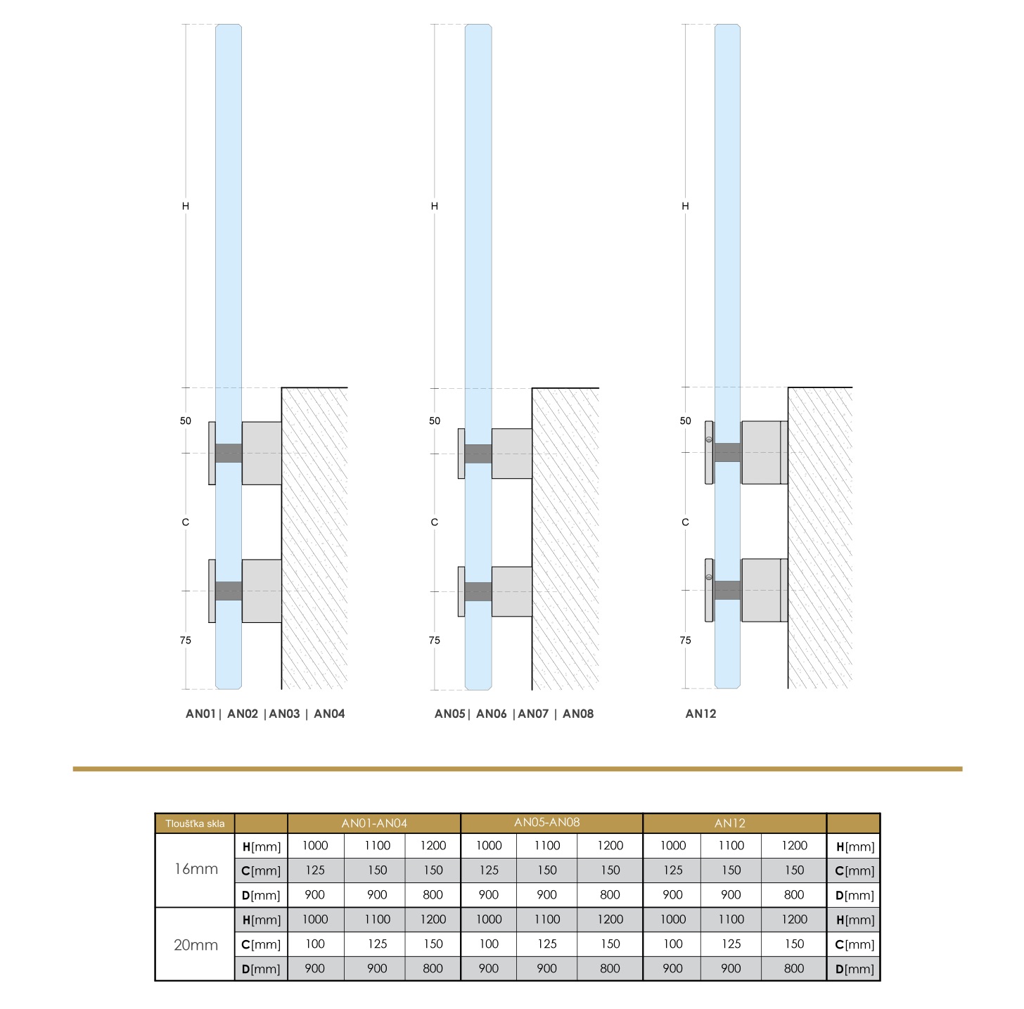 Max. výška skla 1200 mm