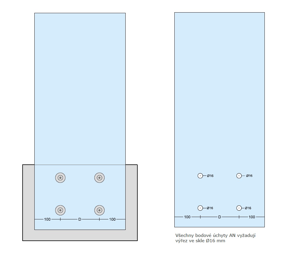 Nerezový bodový úchyt AN07 je základní konstrukční prvek pro bezpečné upevnění celoskleněného zábradlí v interiéru i exteriéru.
