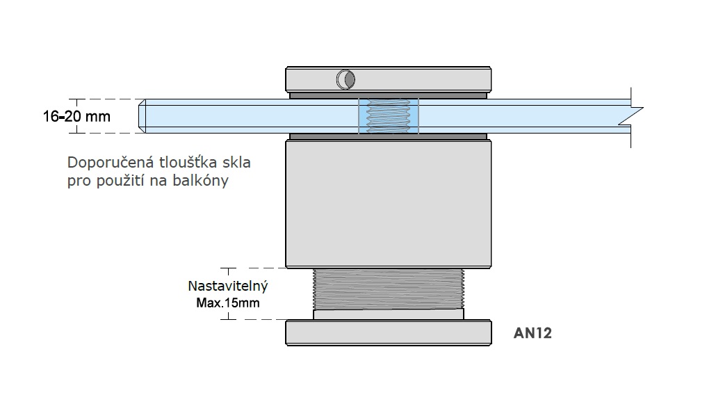 Nastavitelný nerezový bodový úchyt pro skleněné zábradlí AN12