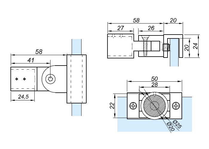 Nastavitelný úchyt tyč-sklo, pro stabilizační tyč GT102, pro sklo 8-10 mm.