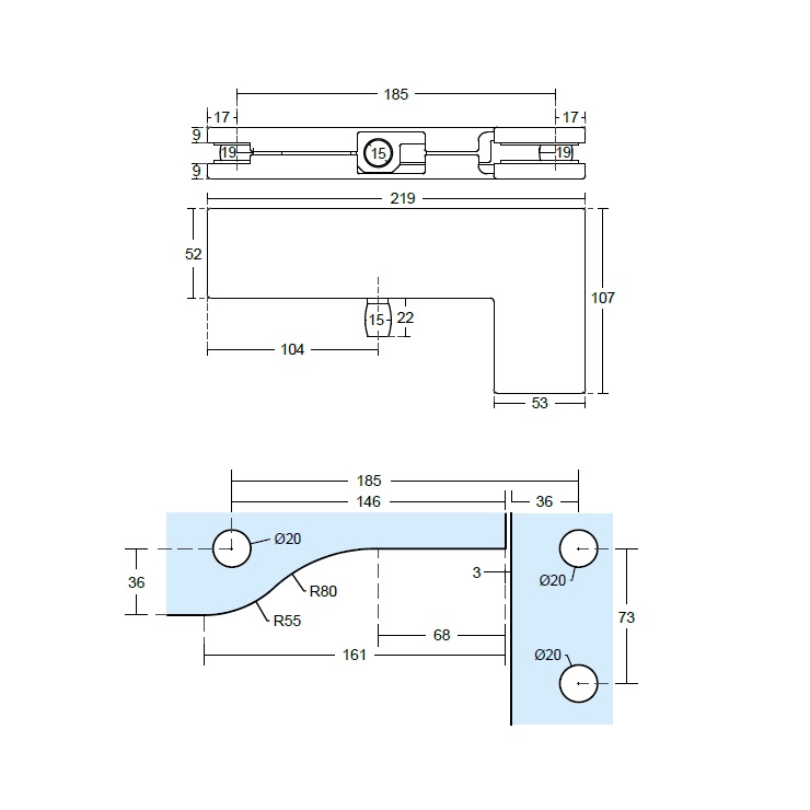 Horní čep FH29 je určen pro celoskleněné otočné a kyvné dveře („lítačky“) s nadsvětlíkem a bočním světlíkem. Je navržen tak, aby poskytoval plynulý a bezpečný pohyb dveří při běžném každodenním používání.