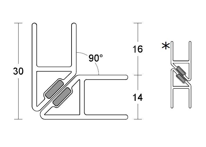 Magnetické těsnění 90° (180°) pro sklo 6-10 mm, délka 2200 nebo 3000 mm. Cena za pár.