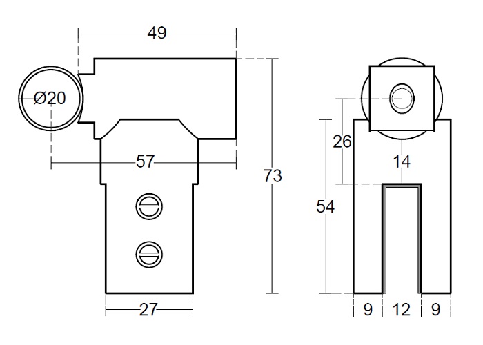Úchyt sklo-kolejnice (GT01). Pro sklo 10 mm.