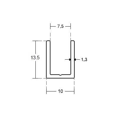 Hliníkový "U" profil 15x13x1, pro sklo 10 mm GG03