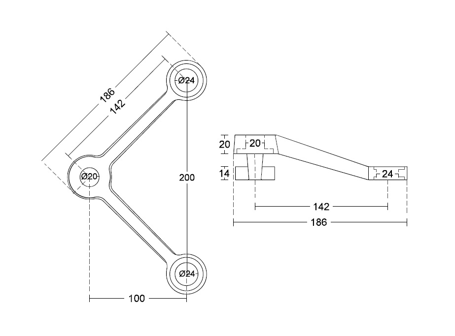 Dvouramenný spider 90°, max. váha 100kg/ks.