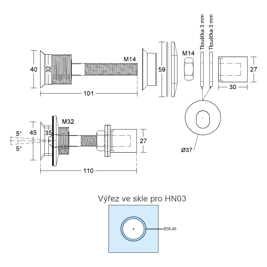 Zapuštěný bodový úchyt, max. váha 150kg/ks, pro sklo 18-30 mm.
