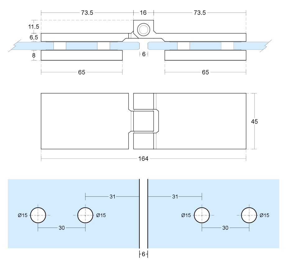 Sprchový pant sklo-sklo 180° - ostré hrany