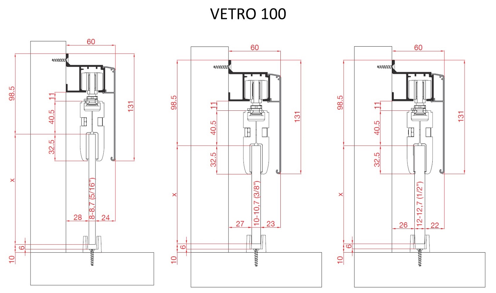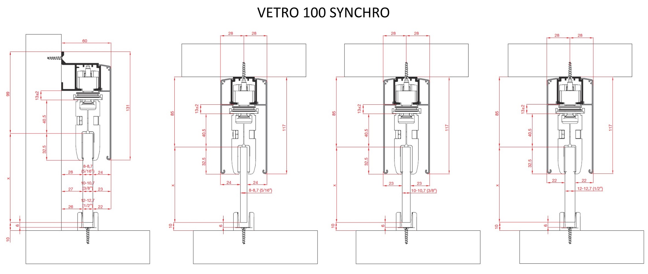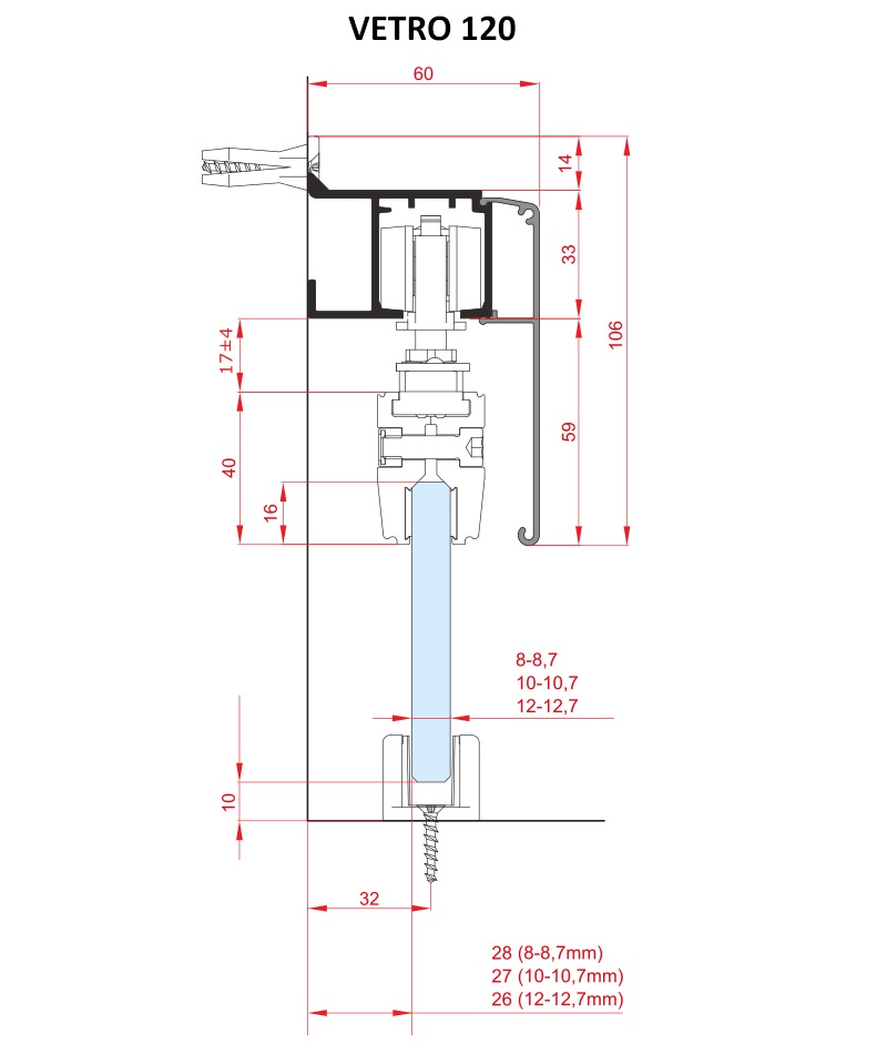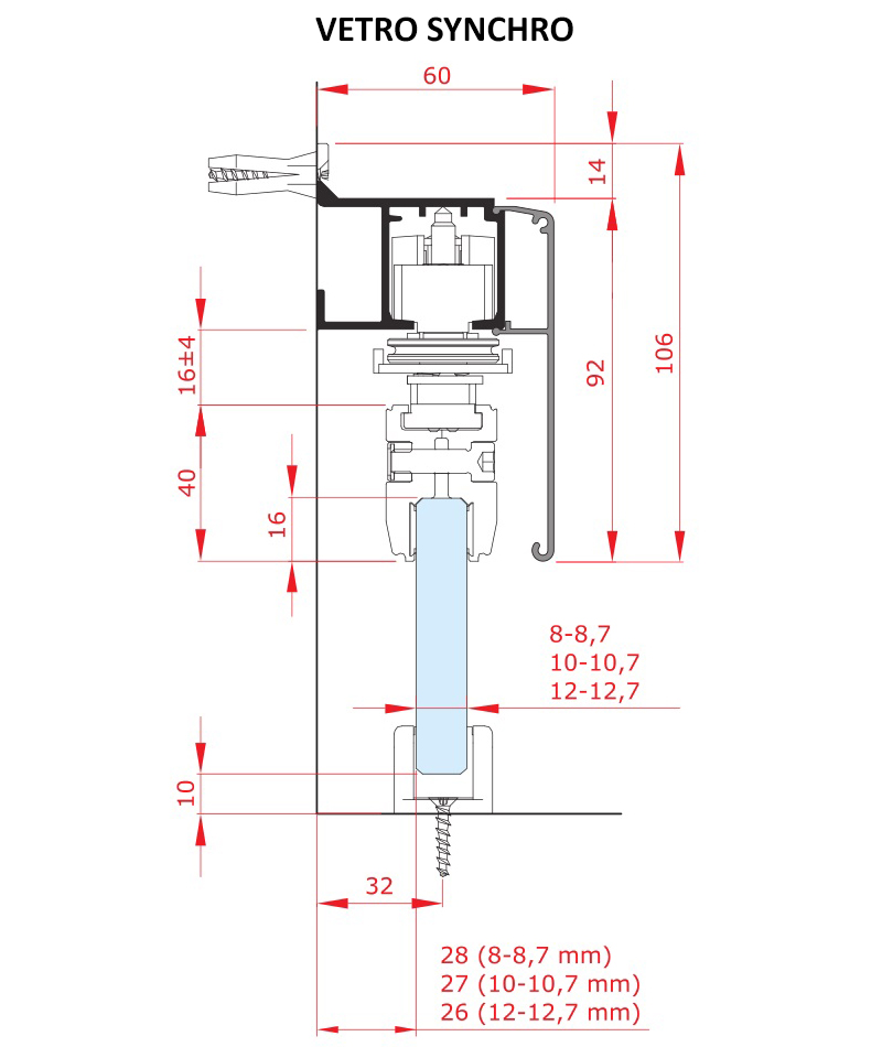 Kolejnice pro posuvný systém VETRO 100, VETRO 120 a VETRO SYNCHRO. Montáž je možná pouze na zeď.