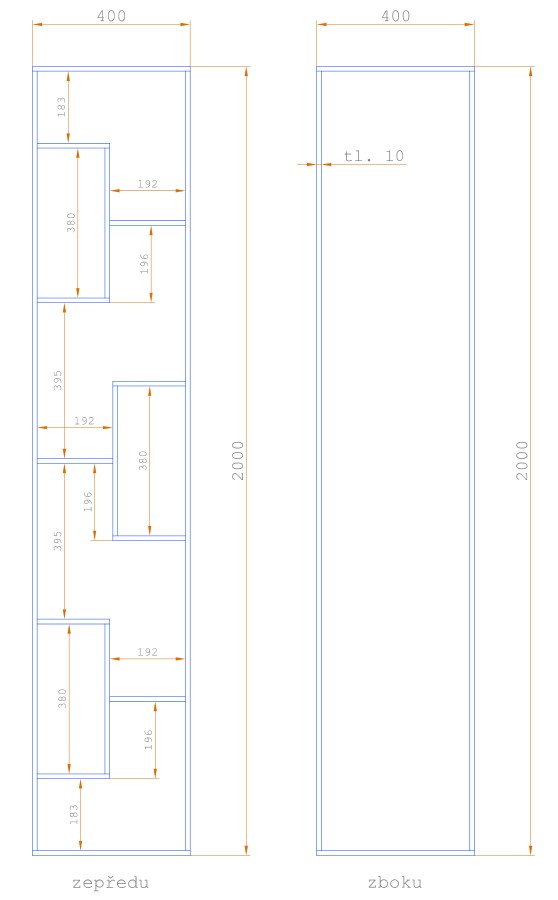 Rozměr: 400 x 400 x 2000 mm (š x h x v)