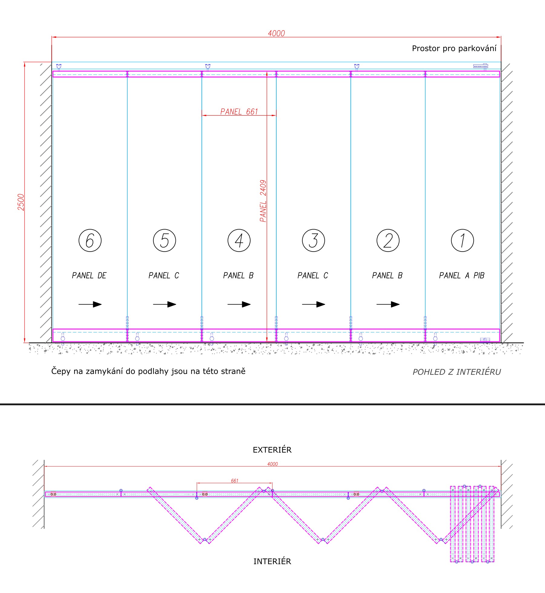 Uvedená cena je za skládací stěnu o rozměru 4000 x 2500 mm (š x v), 6 panelů s čirým bezpečnostním sklem ESG 10 mm. Kolejnice a kování jednotlivých panelů jsou v povrchové úpravě stříbrný elox. Montážní materiál není součástí dodávky.