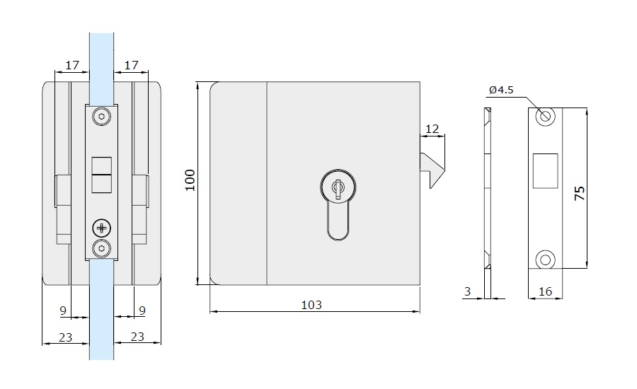 Madlo se zámkem pro posuvné dveře, pro sklo 8-12 mm. Možnost volby protikusu na sklo nebo na zeď. Součástí je protikus do zdi.