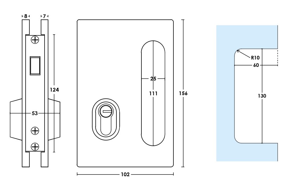 POSLEDNÍ KUS! Madlo pro posuvné dveře s oboustrannou cylindrickou vložkou, pro sklo 10 mm. Cylindrická vložka je součástí balení.