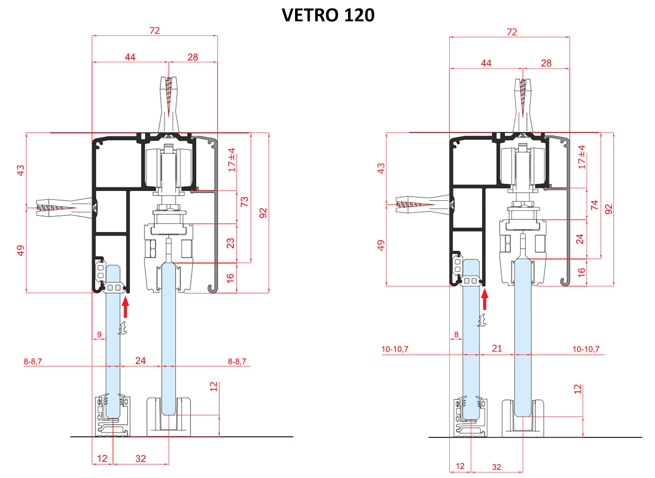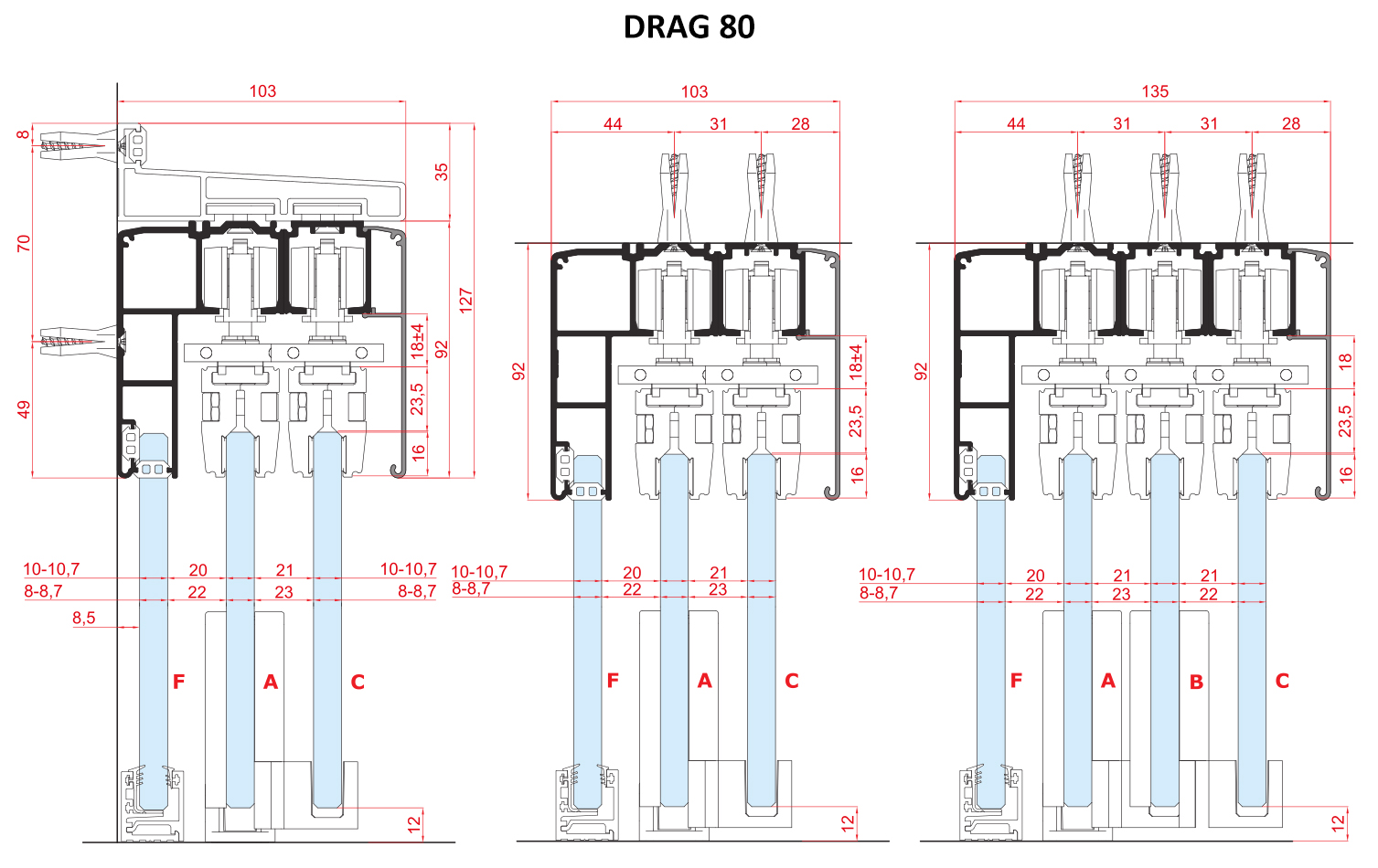 Kolejnice s fixním dílem pro posuvný systém DRAG 80 a VETRO 120. Montáž je možná na zeď i do stropu.
