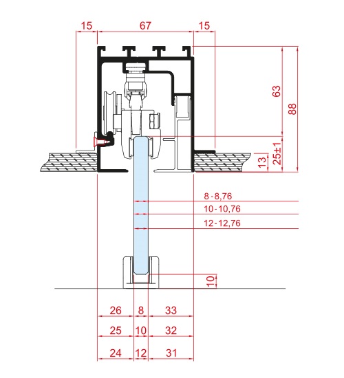 Kolejnice pro posuvný systém SOLO LIGHT 80 s montáží do podhledu/sádrokartonu.