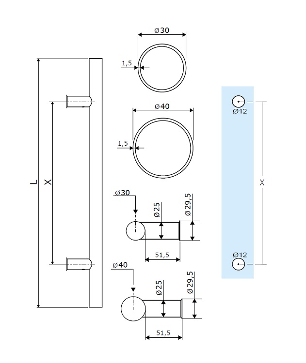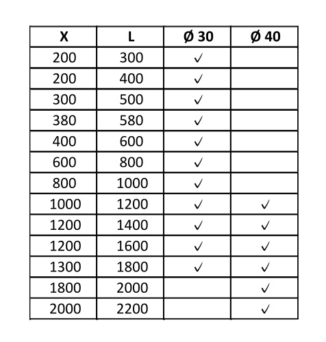 Možnost výběru jiného rozměru madla viz. tabulka - nutno upřesnit v objednávce.