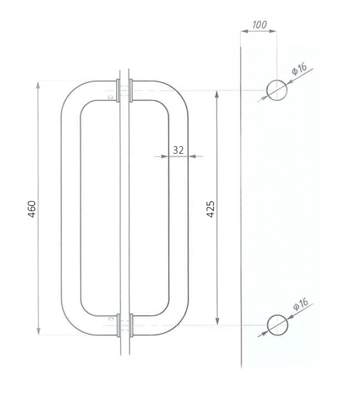 POSLEDNÍ 2 páry! Trubkové madlo, pro sklo 8-12 mm. Průměr trubky 32 mm. Délka madla 460 mm, rozteč os děr 425 mm. Cena za pár.