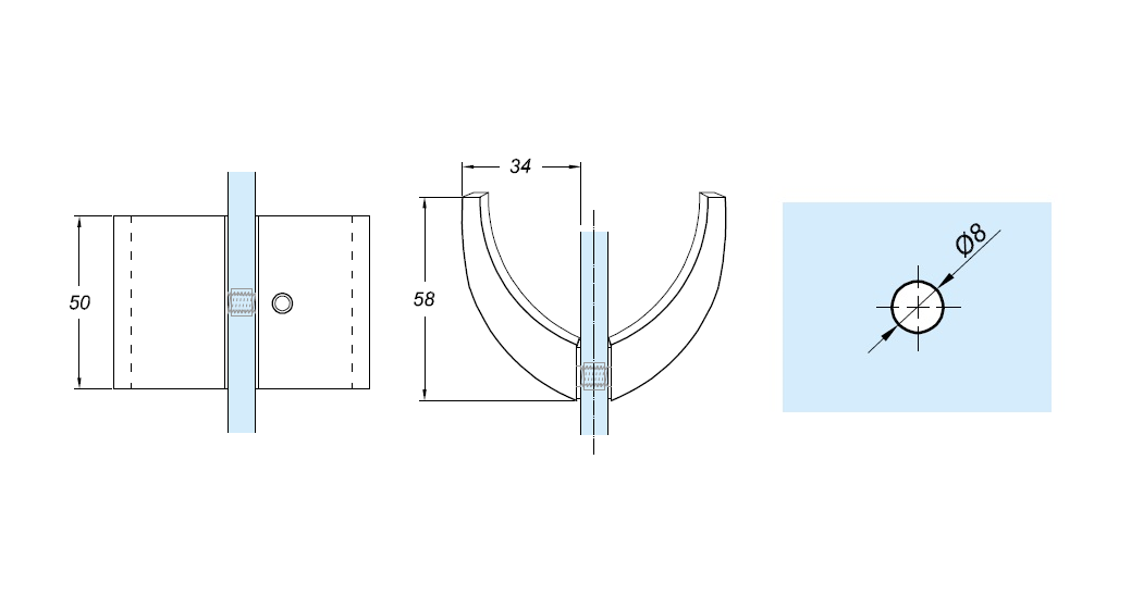 POSLEDNÍ 4 ks! Dveřní úchyt, rozměr 58x34mm, pro sklo 6-12 mm. Cena za komplet.