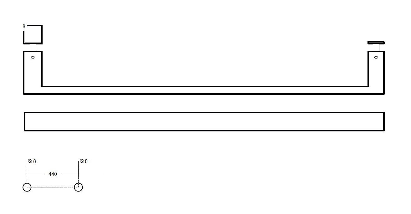 POSLEDNÍ 2 ks! Madlo do sprchy 30x10mm, pro sklo 8-10 mm, rozteč os děr 440 mm. Jednostranné.