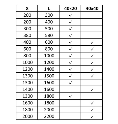 Možnost výběru jiného rozměru madla viz. tabulka - nutno upřesnit v objednávce.