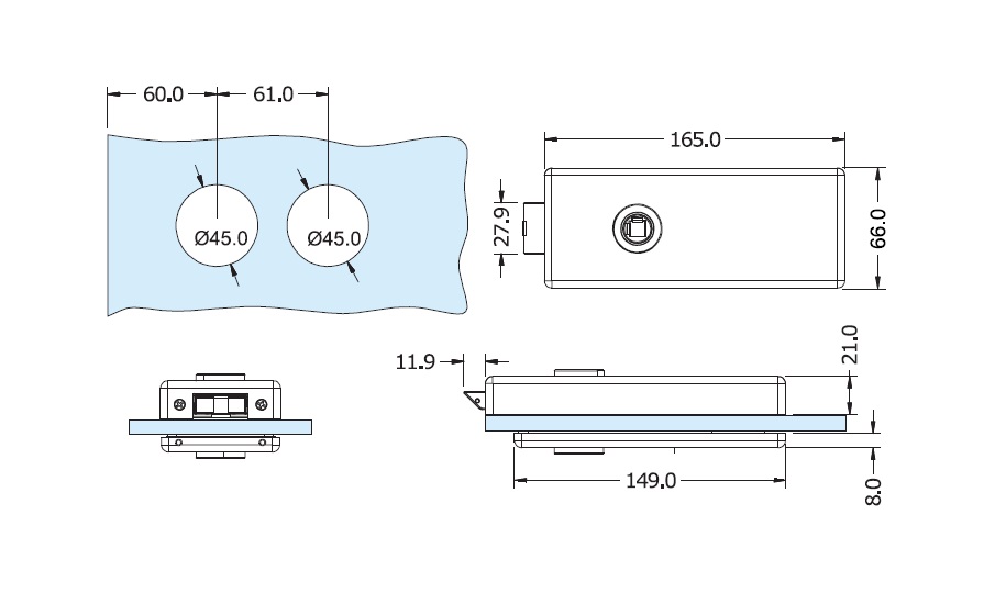 Zámek na skleněné dveře DL38W
