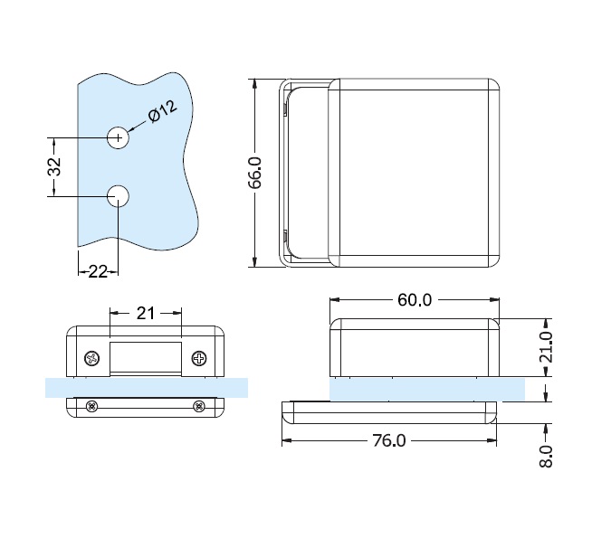 Protikus magnetického zámku DL41M, DL38M, pro sklo 8-12 mm.